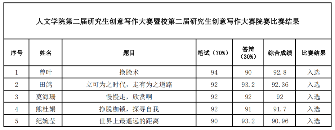 红足一1世足球网官方网站第二届研究生创意写作大赛暨校第二届研究生创意写作大赛院内选拔赛选拔名单公示