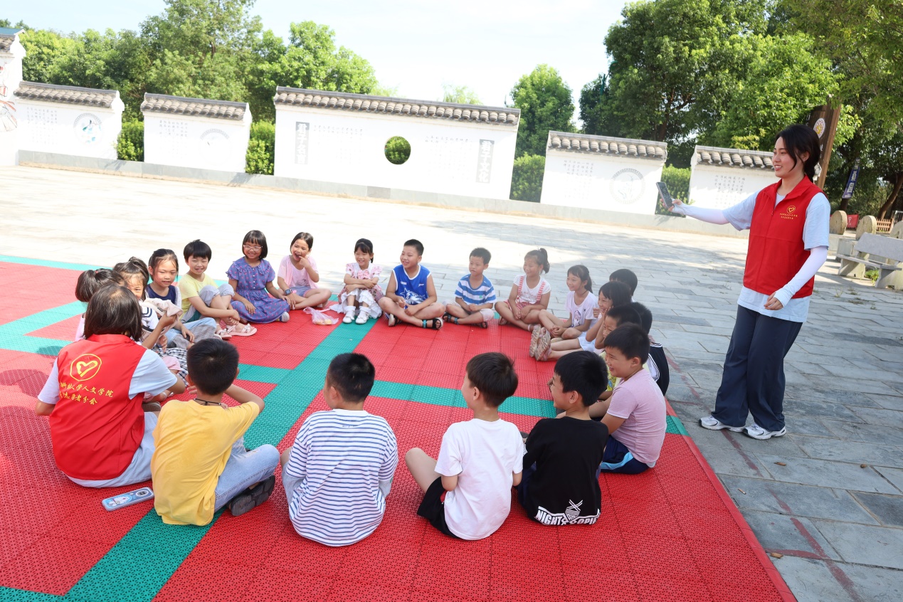 学史可以知兴替,习舞可以塑身形。为增强民族自豪感与凝聚力,提高学生身体素质能力,7月12日,红足一1世足球网官方网站暑期“三下乡”实践团队于株洲市石羊塘镇谭家垅村儿童之家开展多样化课堂。