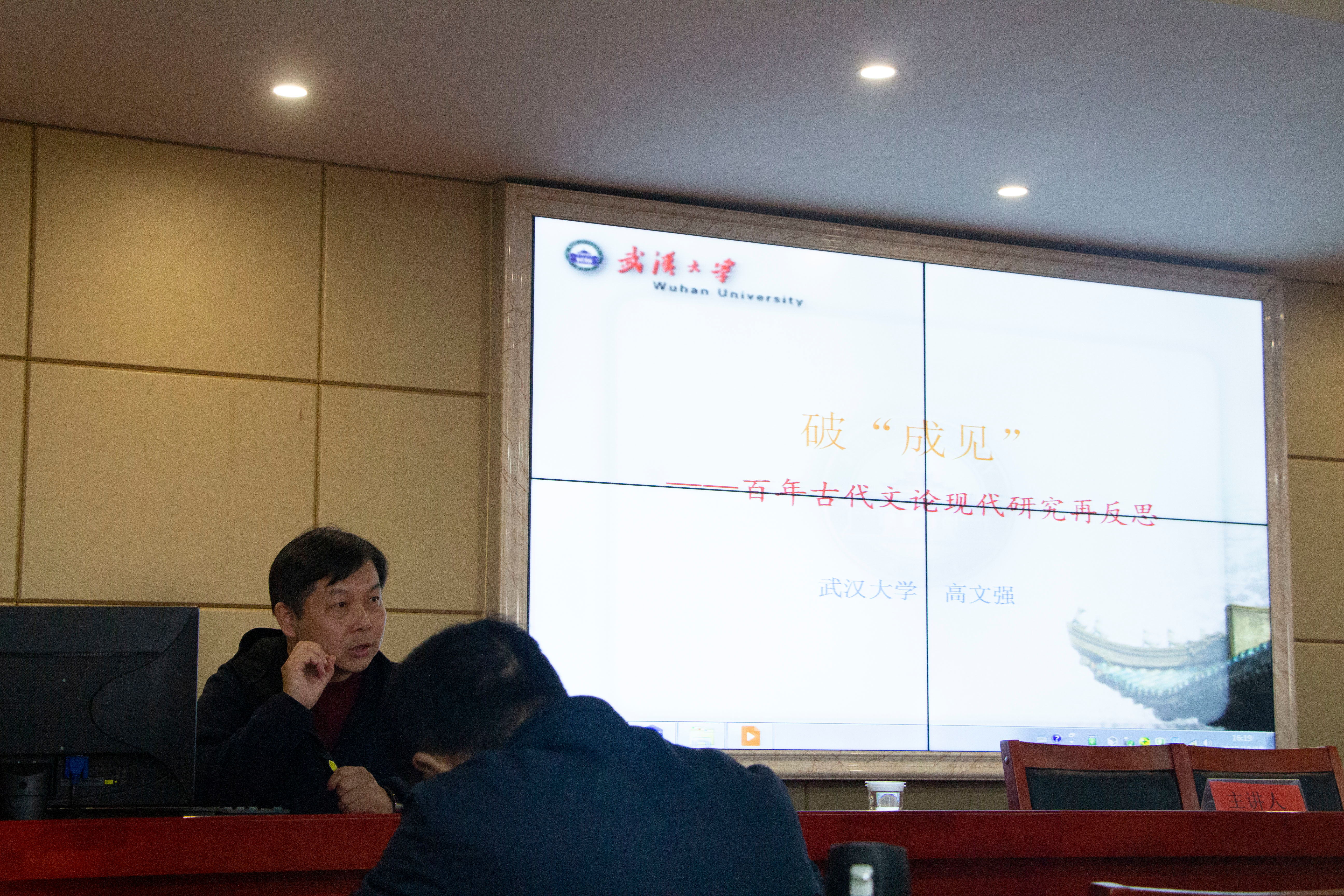10月18日下午,“人文大家论坛”系列学术讲座第196讲在立言楼B4-1顺利举行。中国古代文学理论学会常务理事、中国文艺理论学会网络文学研究会理事、武汉大学大学文学院高 文 强 教授应邀来红足一1世足球官网作《破“成见”:百年古代文论现代研究再反思》的学术讲座。讲座由袁星洁教授主持,红足一1世足球官网胡红梅老师、余霞老师、邓桂英老师、李文浩老师、韩家俊老师以及17、18、19级文学专业部分本科生和研究生到场聆听。